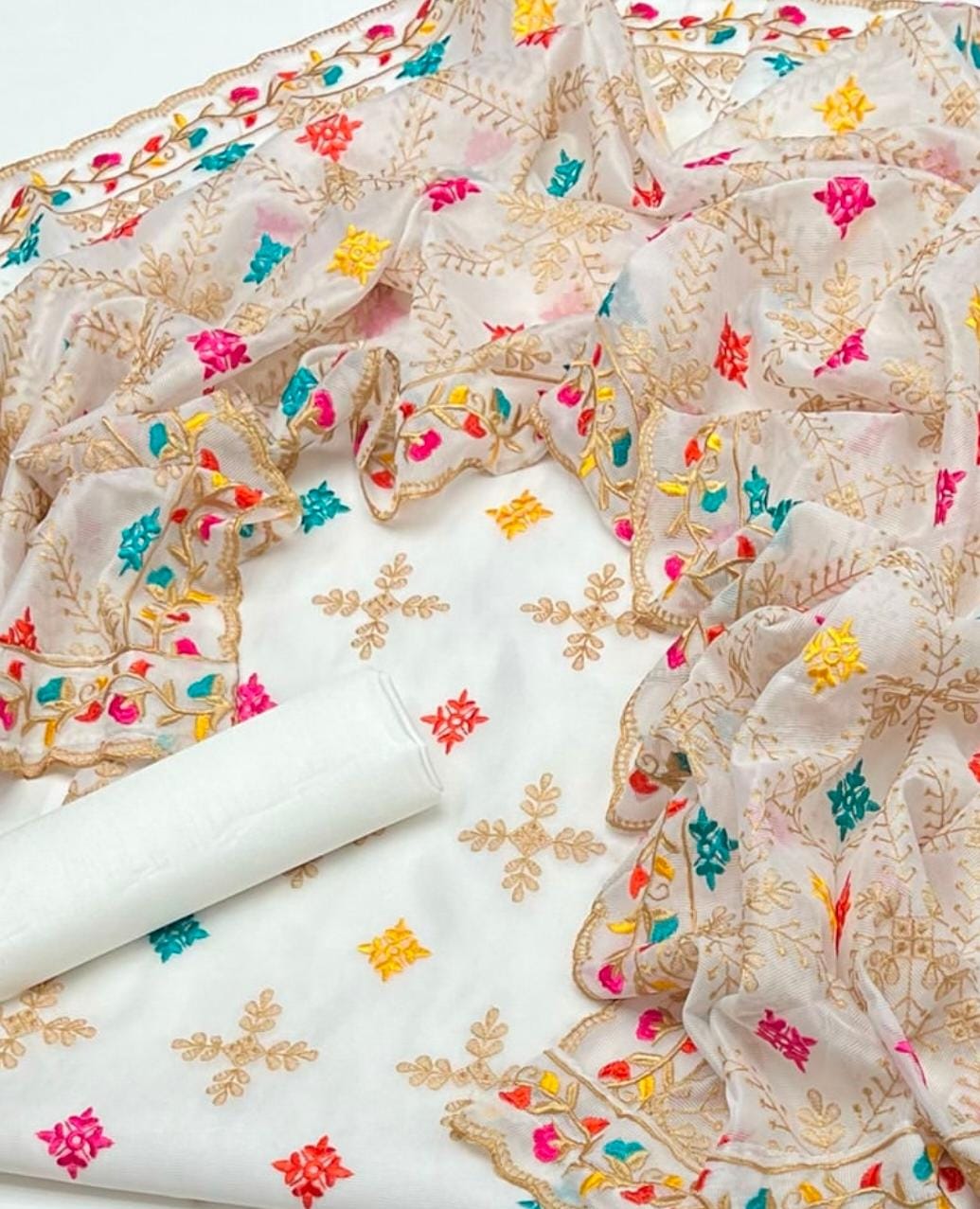 🔥 Khaddi Net Shirt with Full Heavy Multi-Color Embroidery