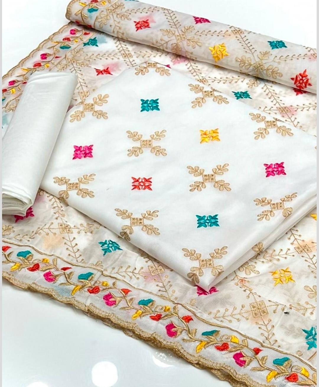 ❤️ Khaddi Net Fancy Full Heavy All Over Embroidered Phulkari Dupatta with 4-Side Border